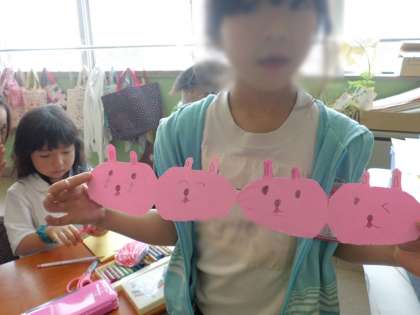 1度しか切っていないのに、いっぺんに4人つながった作品が完成します。