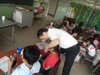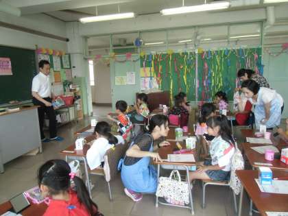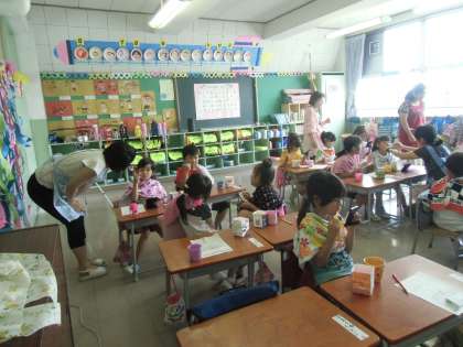 1年生は歯科校医さんによる歯磨きの指導がありました。