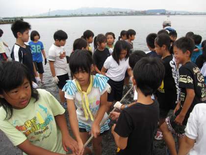 由木東小の5年生140人と力を合わせて、がんばりました。