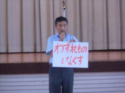 主幹教諭からは、自分を変える第一歩として「忘れ物をしない」ことについて話がありました。そのために連絡帳をきちんとつけることの大切だということです。家で連絡帳を見ながら明日の準備をする…基本的なことをもう一度身に付け直していきたいと考えています。