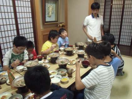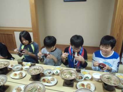 今年もついにやってきました。晩ご飯の時間です。昨年、子供たちの食欲に驚かされました。今年はどうなのでしょうか。「よーい、はじめ」ではなくて「いただきます」