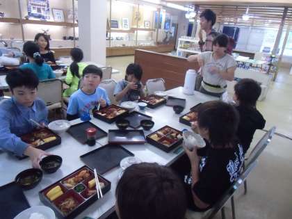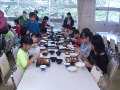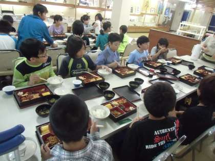 唐揚げ、フライに焼きそば、ミートボール等、子供に人気のおかずがてんこ盛り。おいしいけれど、中高年にはカロリーが気になりそうな。学生時代の合宿を思い出します。