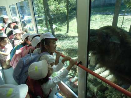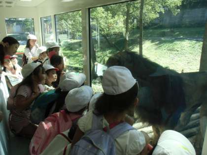 息をのんで、ライオンを見つめていました。ライオンをバスに乗ってガラス越しに見る、素晴らしいアイデアだなと、感心します。この歳で乗ってもワクワクしますから。