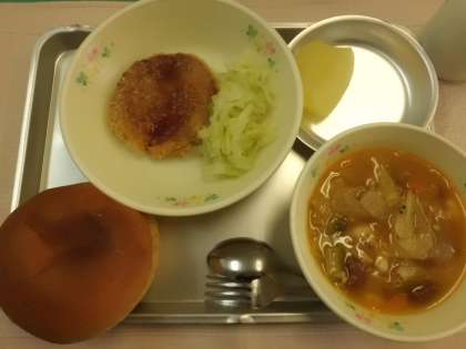 子供たちはパンにハムカツとキャベツを挟んで、大きな口をあけてよく食べていたので、ほとんど残食はありませんでした。