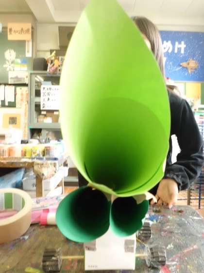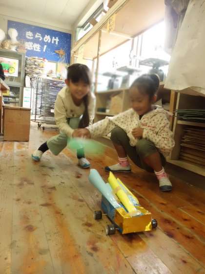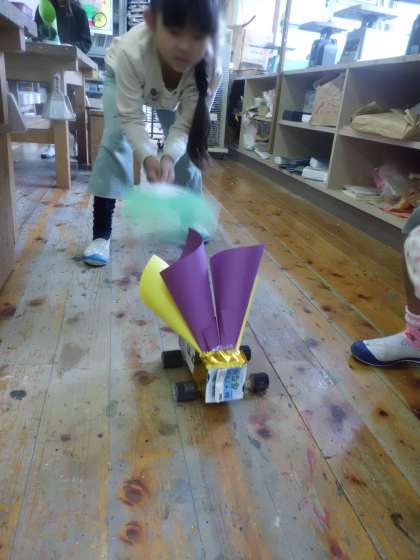 エンジンは、一人2枚の画用紙で作る風エンジン。
