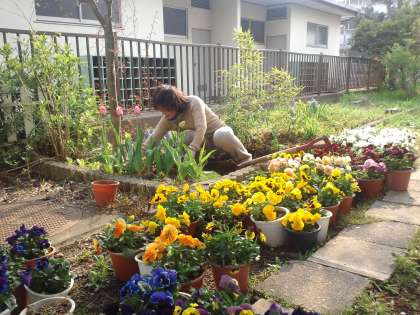 入学式などで使用したお花などを花壇に植えてくれています。とってもきれいです。ありがとうございます。