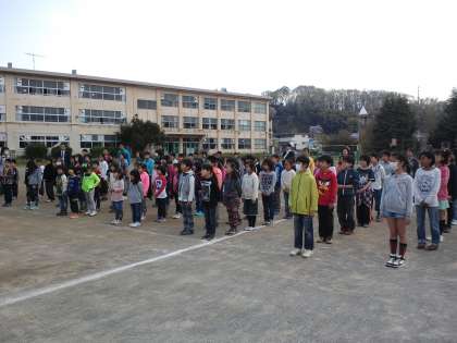 今日は全校朝会でした。校長先生の話、生活指導主任の話、アシスタントティーチャーの設楽先生の紹介ありました。