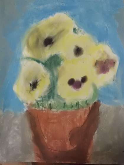 パステルコンテ、水彩絵の具、たこ染料、アクリル絵の具