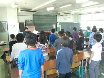 5年生の音楽です。きれいな歌声が響いています。