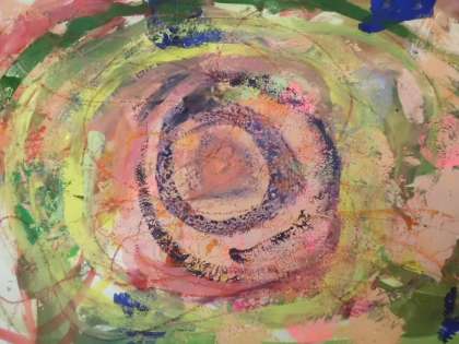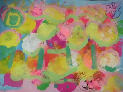 先週のスタンプでできた花を