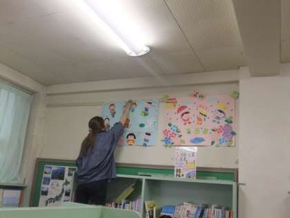 昨日、図書ボランティアの方々が図書館の整備、本の整頓や修理などをしてくださいました。本校の図書館がとてもよい図書館になるように一生懸命活動してくださっています。