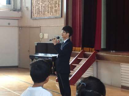 そして、昨日から教育実習生の方がいらっしゃいました。また、インターンシップも始まりましたので、自己紹介をしてもらいました。