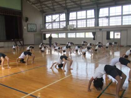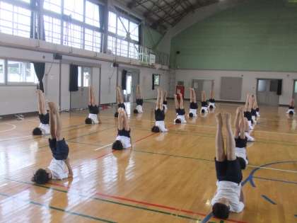 運動会の5・6年生の演技「組体操」の練習の様子です。みんなよく頑張っています。