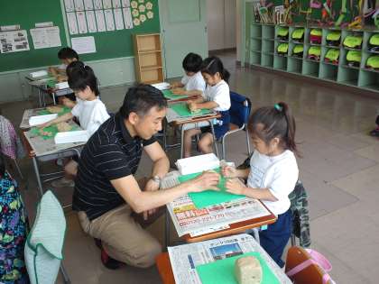 図工の授業を参観してきました。1年生が初めて粘土を使った授業でした。どの人も積極的に授業に参加していてとてもよかったです。
