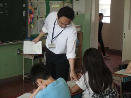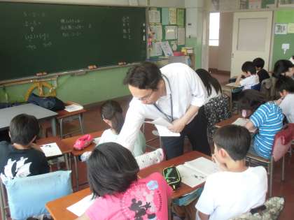 昨日です。小中一貫教育の取り組みの一つとして、出張授業を受けました。算数が数学に。緊張して数学の授業を受ける6年生たちです。