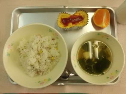 ピラフの塩加減とパラパラ感が運動会の練習で汗をかき、ぐったり気味の子供たちに食べやすかったようです。今日はどのクラスもほとんど残食がありませんでした。