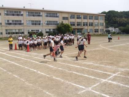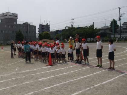 今日は、全校練習の2回目を行いました。入場、開会式、閉会式、午後の応援練習、全校競技の大玉送りの練習でした。