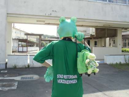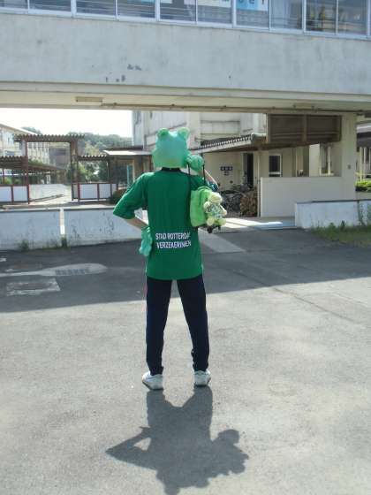 怪しい後ろ姿が、北小に。運動会に乱入するつもりでしょうか。