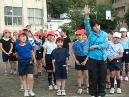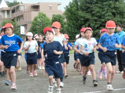 3年生です。はじめてコーナーを走りぬけます。階段スタートです。