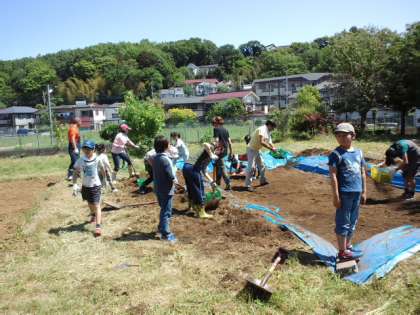 5月17日土曜日、本校の親児(おやじ)の会の皆様方が中心となり五年生の田んぼを田おこしをしてくださいました。保護者の方々、子どもたち、教職員合わせて、30人以上集まり頑張りました。