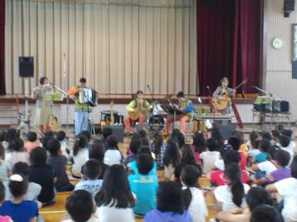 先週、音楽鑑賞教室が体育館でありました。アンサンブルむげんという方々でした。とても楽しかったですね。