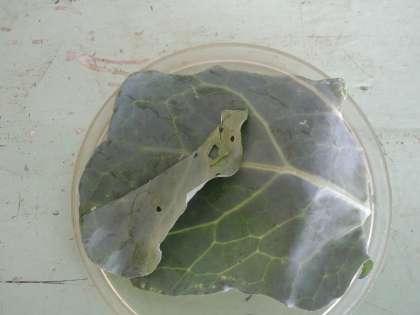 3年生の教室にモンシロチョウの幼虫が・・・キャベツの葉のどこにいるかわかりますか?