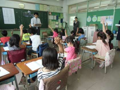 はじめてお目にかかる先生に、緊張気味の子供たちです。