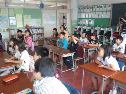 先日、羽村市英語コーディネーターの秋田先生をゲストティーチャーとしてお迎えして、外国語の授業をしていただきました。4年生5年生6年生に教えてくださいました。英語劇を取り入れてながら子どもたちは楽しみながら英語を学んでいました。