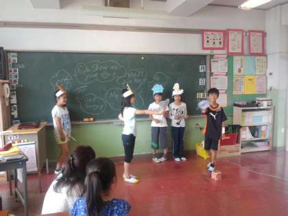 先日、羽村市英語コーディネーターの秋田先生をゲストティーチャーとしてお迎えして、外国語の授業をしていただきました。4年生5年生6年生に教えてくださいました。英語劇を取り入れてながら子どもたちは楽しみながら英語を学んでいました。