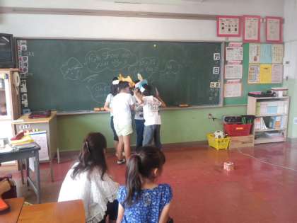 先日、羽村市英語コーディネーターの秋田先生をゲストティーチャーとしてお迎えして、外国語の授業をしていただきました。4年生5年生6年生に教えてくださいました。英語劇を取り入れてながら子どもたちは楽しみながら英語を学んでいました。