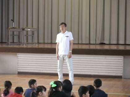 先週に引き続き、委員会紹介集会でした。各委員会ごと工夫して発表していました。また、委員会紹介集会のあとに、今日からインターンシップで来校する明星大学の学生さん2名を紹介しました。