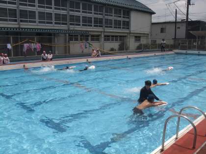 今週の火曜日久しぶりにプールに入っての水泳指導が行われました。1・2年生は小プール、3・4年生は大プールを使っての水泳でした。