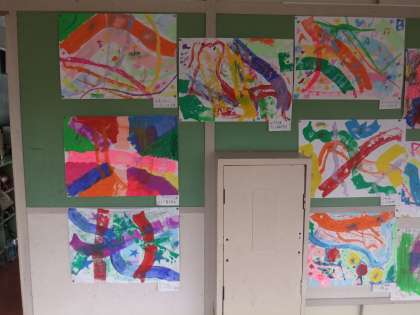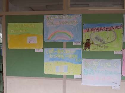 校舎内の廊下や教室内にたくさんの図工の作品が掲示してあります。学校全体が美術館のようです。紹介します。