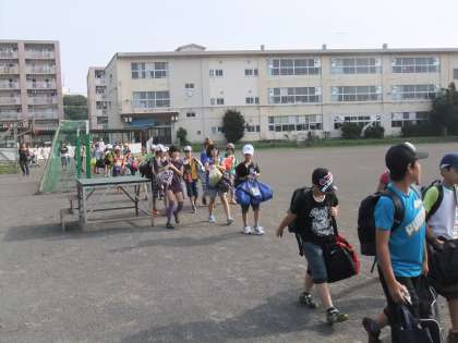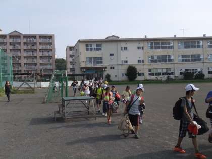 今日、5年生が清水方面に移動教室に元気に出発しました。出発式は、とても立派な態度でできました。お昼過ぎに連絡があり、順調とのことです。