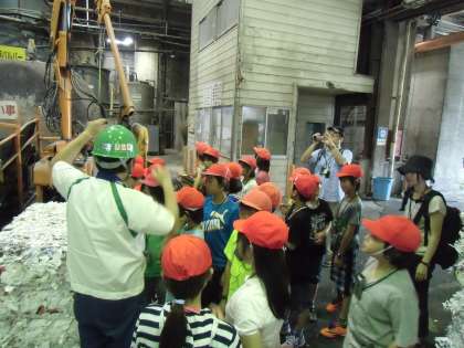 工場見学は、暑さ・音・香り、様々なものが子供たちを取り巻きます。365日24時間操業しているそうです。