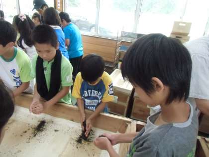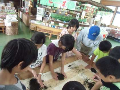 摘んだあとは、葉をもみます。この釜のまわりが暑いのです。