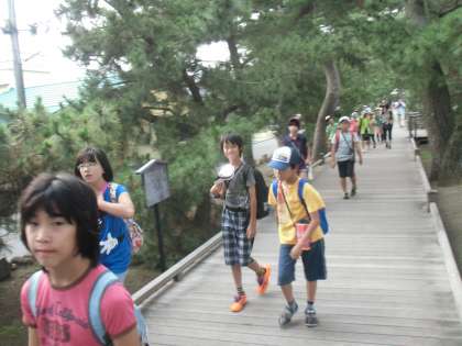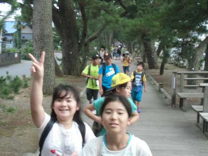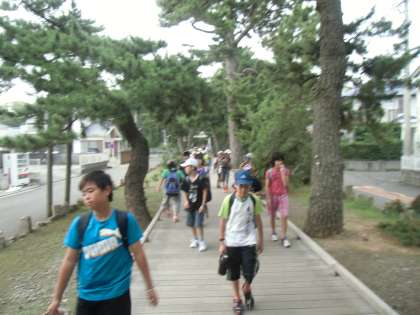 お茶を摘み、地引き網を引いて、さあ宿舎へと思いきや、まだまだ。三保の松原まで散歩に行きます。ハードです。時間は17時です。