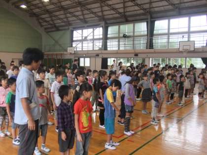 今日の全校朝会は校長先生のお話(中秋の名月、13夜)と校長先生から本をよく読んだ子供たちの表彰もありました。