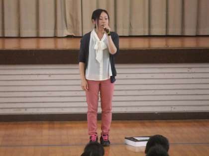今日の全校朝会は校長先生のお話(中秋の名月、13夜)と校長先生から本をよく読んだ子供たちの表彰もありました。