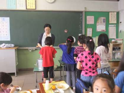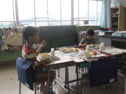 月曜日に、1年生と一緒に給食を食べました。たくさん食べるようになりましたね。