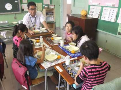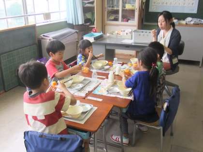 月曜日に、1年生と一緒に給食を食べました。たくさん食べるようになりましたね。
