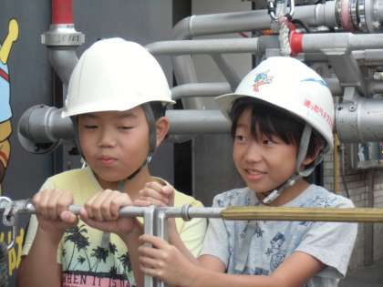 次は男子の番です。上空は風も穏やかで、あまりハシゴは揺れなかったそうです。