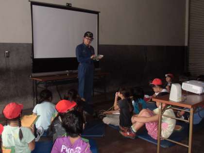このあと、防災に関するDVDを見ました。自分でできること・助け合うこと・自分にできることを、避難訓練の度に子供たちと考えていきます。