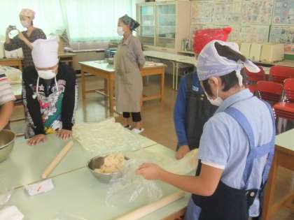 5年生が味噌作りを家庭科室で行っていました。おいしいお味噌ができるといいね。