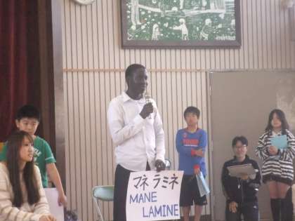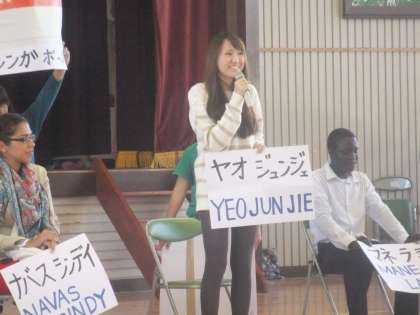 10月24日金曜日に創価大学に留学に来ている6名の方々が来てくださいました、その日は、韓国、セネガル、アメリカ、トルコ、シンガポールから日本に留学に来ている方々です。日本語が上手でびっくりしました。子供たちは大興奮ですごく楽しそうでした。3時間目は体育館で全体会を行いました。その後、4校時から給食までは、各クラスに分かれ、さらに交流を深めました。留学生の皆さん、ありがとうございました。