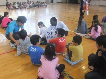 10月24日金曜日に創価大学に留学に来ている6名の方々が来てくださいました、その日は、韓国、セネガル、アメリカ、トルコ、シンガポールから日本に留学に来ている方々です。日本語が上手でびっくりしました。子供たちは大興奮ですごく楽しそうでした。3時間目は体育館で全体会を行いました。その後、4校時から給食までは、各クラスに分かれ、さらに交流を深めました。留学生の皆さん、ありがとうございました。