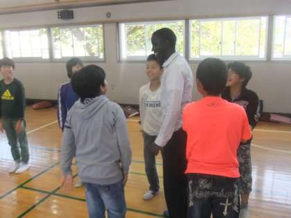 10月24日金曜日に創価大学に留学に来ている6名の方々が来てくださいました、その日は、韓国、セネガル、アメリカ、トルコ、シンガポールから日本に留学に来ている方々です。日本語が上手でびっくりしました。子供たちは大興奮ですごく楽しそうでした。3時間目は体育館で全体会を行いました。その後、4校時から給食までは、各クラスに分かれ、さらに交流を深めました。留学生の皆さん、ありがとうございました。