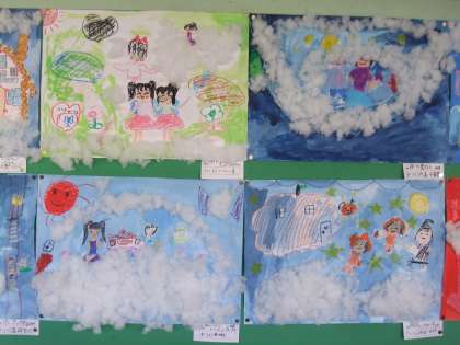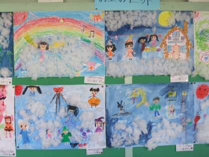 最近の各教室や廊下の掲示物を紹介します。図工の時に造った作品、普段の授業で使用した掲示物などです。