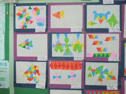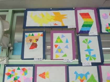 最近の各教室や廊下の掲示物を紹介します。図工の時に造った作品、普段の授業で使用した掲示物などです。