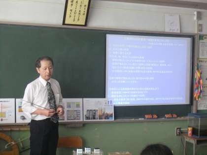 先週の金曜日に6年生の理科「土地のつくりとはたらき」の単元で、防衛大学校の正垣先生をゲストティーチャーとしてお招きして授業を行いました。先生は地盤工学の専門家ですので、子供たちには、「土の分類と性質」「地形と地層」「地盤による災害のおき方(地すべり、地震、土石流、液状化現象」と「どう対処したらよいか」まで教えていただきました。その時の様子です。